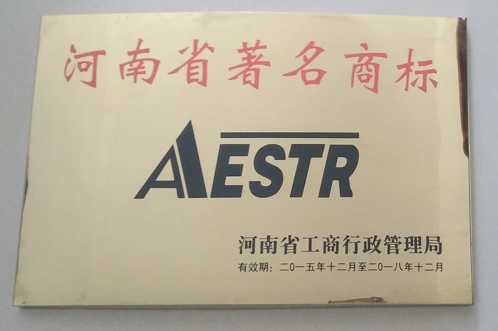 河南省著名商標證書掃描件