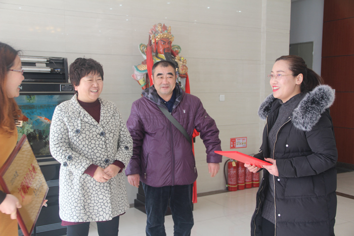 2017年2月24日上午10點,漯河市工商局辦公室張主任、漯河經濟開發(fā)區(qū)工商分局于局長及漯河經濟開發(fā)區(qū)后謝鎮(zhèn)工商所劉所長一行來到公司,對匯龍液壓獲得“2016年度文明誠信企業(yè)”進行授牌及表彰,公司總經理趙會芳代表公司接受榮譽并合影留念。