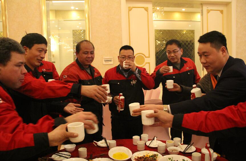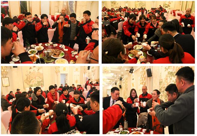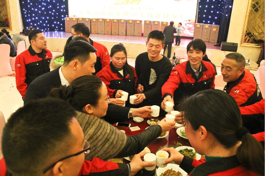 席間,董事長帶領(lǐng)著部門領(lǐng)導(dǎo)來到餐桌前對(duì)全體員工表達(dá)感謝和祝福。