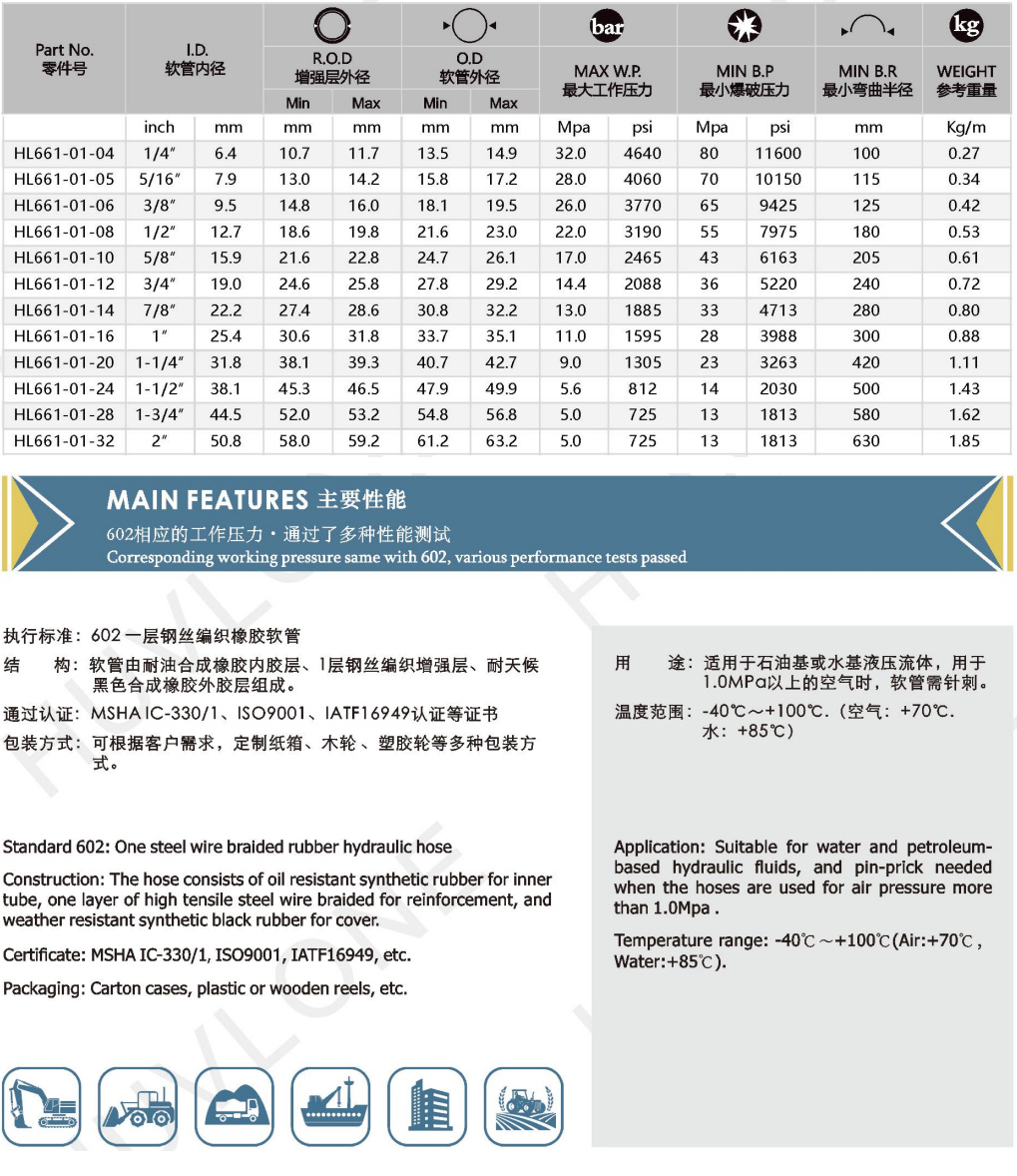 602 One steel wire braided hydraulic hose