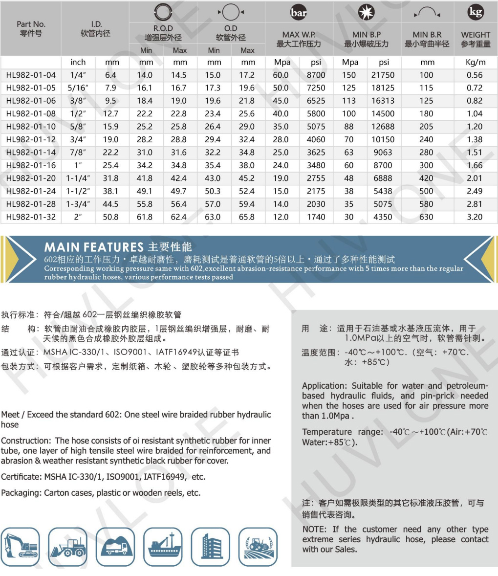 Meet/Exceed the standard 602:One steel wire braided rubber hydraulic hose with abrasion-resistance